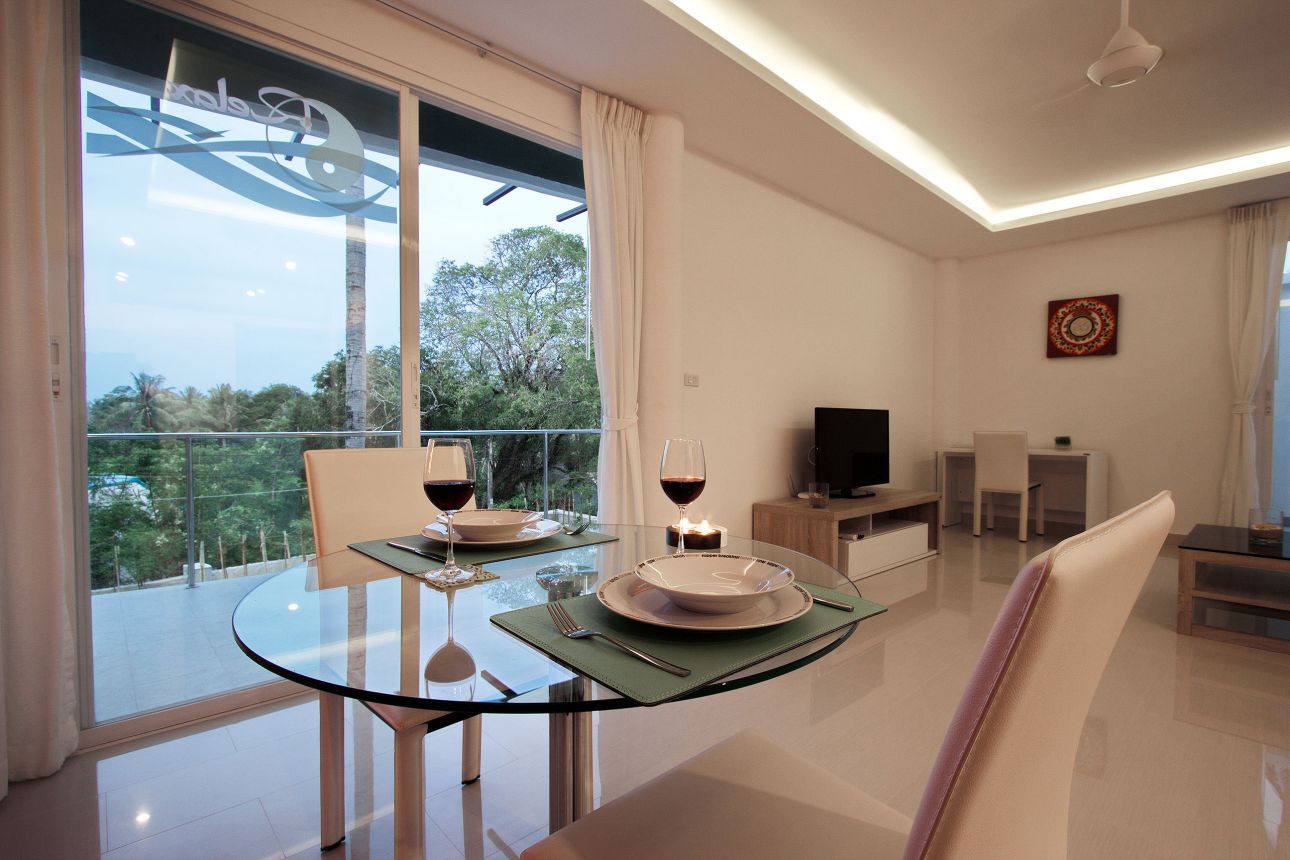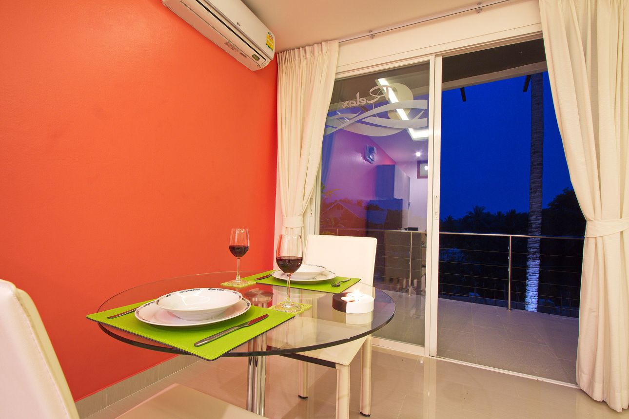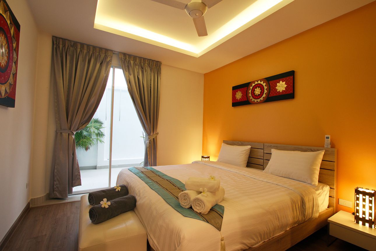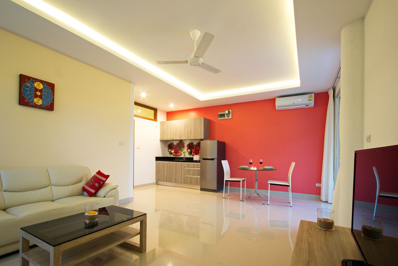1 спальня, 1 ванная комната, полностью оборудованная кухня, гостиная, терраса, кондиционеры, кабельное ТВ, WiFi, общий бассейн и сад